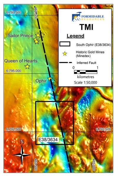 Local geology is a mix of interweaved mafic and ultramafic belts along strike from historic gold mines which conspires to present a sound case for drill testing. Previous exploration has been very limited and a first principles approach to exploration is warranted to test under shallow cover. Studies of historical airborne geophysics by the Formidable team has identified a number of drill targets on this tenement.